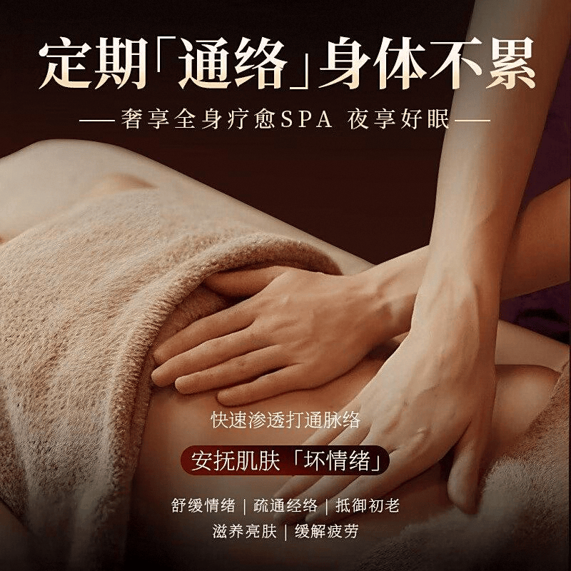 促进血液循环:独特的按摩体验可以有效刺激经络,提升血液流动,帮助缓解肌肉紧张和疲惫感,给予身体全方位的放松。这款精油在日常生活中是放松身心的好帮手。
